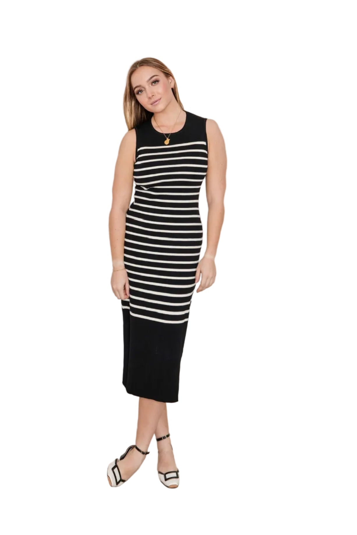 Darcy Black and Cream Striped Sleeveless Sweater Dress